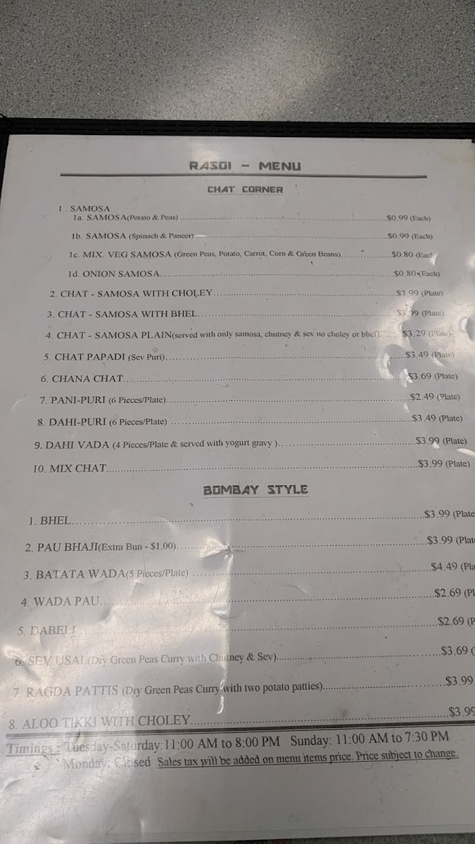 For a unique and light bite, try the Chan Chaat and Paper Chaat, offering a blend of spices, chutneys, and crunchy components that create a mouthwatering snack. The menu at Rasoi Indian Cuisine brings together a variety of vibrant, aromatic, and satisfying dishes that cater to all tastes, from savory to sweet, ensuring a memorable dining experience.